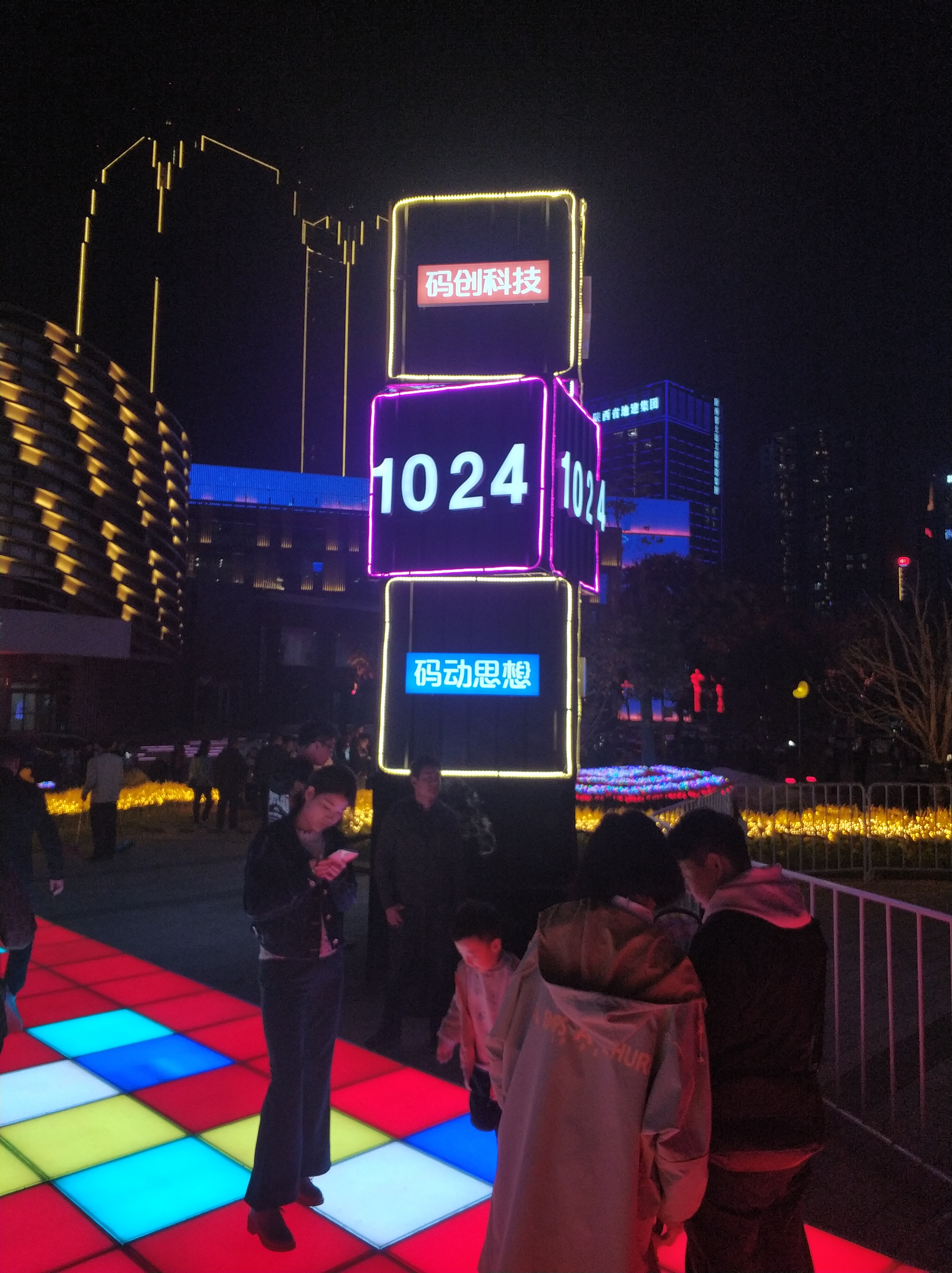 今天是1024程序员节,西安市举办了第二届全球程序员节,晚上还在高新区创业咖啡街区广场举办了晚会,整个广场也加入了好多程序猿元素,好不热闹!